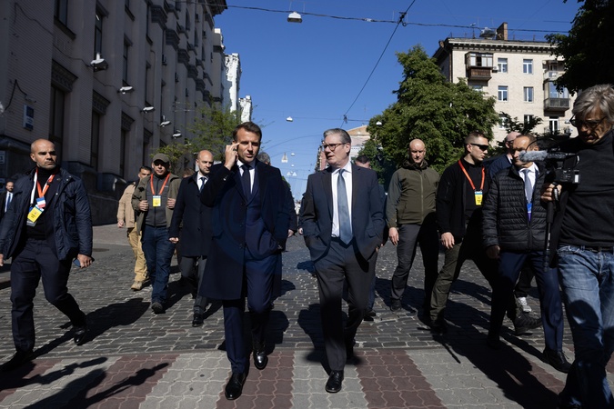 10/05/2025. Kyiv, Ukraine. Prime Minister Keir Starmer, walks with Emmanuel Macron, French President, to meet Volodymyr Zelenskyy, President of Ukraine during a visit to Ukraine., Credit:Simon Dawson / Avalon