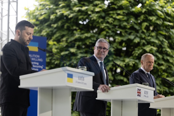10/05/2025. Kyiv, Ukraine. Prime Minister Keir Starmer, Poland Prime Minister Donald Tusk meet with Volodymyr Zelenskyy, President of Ukraine during a visit to Ukraine., Credit:Simon Dawson / Avalon