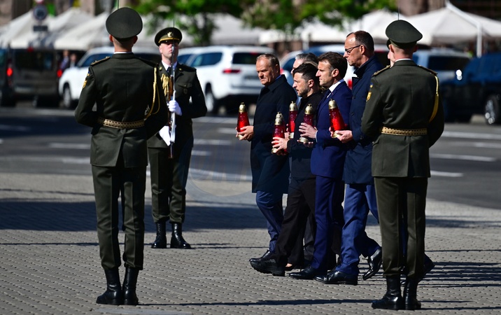 Donald Tusk, le Premier ministre polonais, Keir Starmer, le Premier ministre britannique, Olena Zelenska et son mari Volodymyr Zelensky, le président ukrainien, le président français Emmanuel Macron et le chancelier allemand Friedrich Merz - D.Tusk, le Premier ministre polonais, K.Starmer, le Premier ministre britannique, V.Zelensky, le président ukrainien, le président français E.Macron et le chancelier allemand F.Merz lors de la Commémoration des victimes de la guerre sur la place Maïdan à Kiev, le 10 mai 2025. Les quatre chefs d'État et de gouvernement sont venus plaider en faveur d'un cessez-le-feu de 30 jours dans la guerre russo-ukrainienne. © Christian Liewig / Bestimage D. Tusk, Polish Prime Minister K. Starmer, British Prime Minister V. Zelensky, Ukrainian President E. Macron, French President and German Chancellor F. Merz at the War Victims Memorial on Maidan Square in Kyiv on May 10, 2025. The four heads of state and government want to advocate for a 30-day ceasefire in the Russo-Ukrainian war.