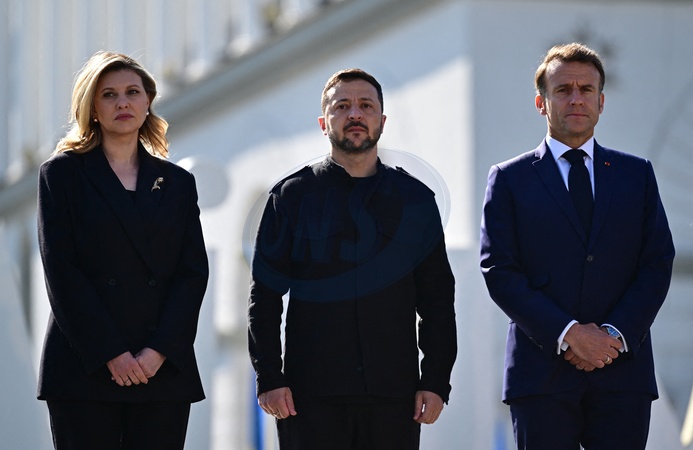 Olena Zelenska et son mari Volodymyr Zelensky, le président ukrainien, le président français Emmanuel Macron - D.Tusk, le Premier ministre polonais, K.Starmer, le Premier ministre britannique, V.Zelensky, le président ukrainien, le président français E.Macron et le chancelier allemand F.Merz lors de la Commémoration des victimes de la guerre sur la place Maïdan à Kiev, le 10 mai 2025. Les quatre chefs d'État et de gouvernement sont venus plaider en faveur d'un cessez-le-feu de 30 jours dans la guerre russo-ukrainienne. © Christian Liewig / Bestimage D. Tusk, Polish Prime Minister K. Starmer, British Prime Minister V. Zelensky, Ukrainian President E. Macron, French President and German Chancellor F. Merz at the War Victims Memorial on Maidan Square in Kyiv on May 10, 2025. The four heads of state and government want to advocate for a 30-day ceasefire in the Russo-Ukrainian war.