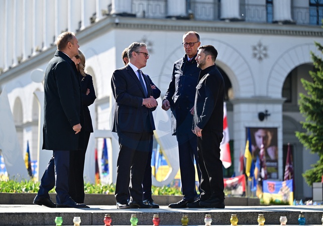 Donald Tusk, le Premier ministre polonais, Keir Starmer, le Premier ministre britannique, Volodymyr Zelensky, le président ukrainien, le président français Emmanuel Macron et le chancelier allemand Friedrich Merz - D.Tusk, le Premier ministre polonais, K.Starmer, le Premier ministre britannique, V.Zelensky, le président ukrainien, le président français E.Macron et le chancelier allemand F.Merz lors de la Commémoration des victimes de la guerre sur la place Maïdan à Kiev, le 10 mai 2025. Les quatre chefs d'État et de gouvernement sont venus plaider en faveur d'un cessez-le-feu de 30 jours dans la guerre russo-ukrainienne. © Christian Liewig / Bestimage D. Tusk, Polish Prime Minister K. Starmer, British Prime Minister V. Zelensky, Ukrainian President E. Macron, French President and German Chancellor F. Merz at the War Victims Memorial on Maidan Square in Kyiv on May 10, 2025. The four heads of state and government want to advocate for a 30-day ceasefire in the Russo-Ukrainian war.
