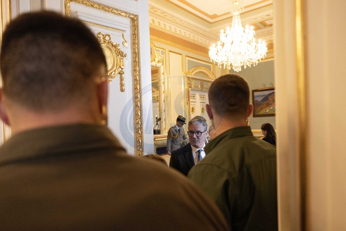 10/05/2025. Kyiv, Ukraine. Prime Minister Keir Starmer and Emmanuel Macron and Volodymyr Zelenskyy, President of Ukraine look at St. Sophia's Cathedral during a visit to Ukraine., Credit:Simon Dawson / Avalon