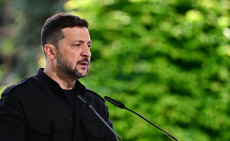 Emmanuel Macron, Friedrich Merz, Keir Starmer, Donald Tusk i Wołodymyr Zełenski na konferencji prasowej po Koalicji Chętnych w Kijowie