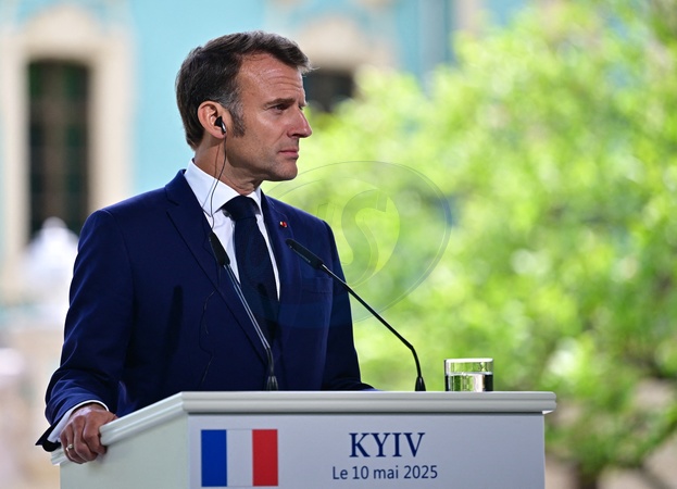 Emmanuel Macron, Friedrich Merz, Keir Starmer, Donald Tusk et Voloydmyr Zelensky donnent une conférence de presse à l'issue de la Coalition des Volontaires à Kiev, le 10 mai 2025. Cette conférence de la Coalition des Volontaires a pour objectif de soutenir l'Ukraine et à contribuer à assurer l'avenir de l'Europe et de l'Ukraine. Le but recherché était l'instauration d'un cessez-le-feu de 30 jours pour soutenir les négociations de paix avec la Russie. © Christian Liewig / Bestimage Emmanuel Macron, Friedrich Merz, Keir Starmer, Donald Tusk, and Voloydmyr Zelensky give a press conference following the Coalition of the Willing in Kyiv on May 10, 2025. The conference aims to support Ukraine and help secure the future of Europe and Ukraine. The goal was to establish a 30-day ceasefire to advance peace negotiations with Russia.