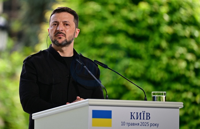 Emmanuel Macron, Friedrich Merz, Keir Starmer, Donald Tusk et Voloydmyr Zelensky donnent une conférence de presse à l'issue de la Coalition des Volontaires à Kiev, le 10 mai 2025. Cette conférence de la Coalition des Volontaires a pour objectif de soutenir l'Ukraine et à contribuer à assurer l'avenir de l'Europe et de l'Ukraine. Le but recherché était l'instauration d'un cessez-le-feu de 30 jours pour soutenir les négociations de paix avec la Russie. © Christian Liewig / Bestimage Emmanuel Macron, Friedrich Merz, Keir Starmer, Donald Tusk, and Voloydmyr Zelensky give a press conference following the Coalition of the Willing in Kyiv on May 10, 2025. The conference aims to support Ukraine and help secure the future of Europe and Ukraine. The goal was to establish a 30-day ceasefire to advance peace negotiations with Russia.