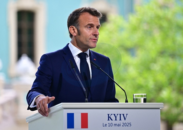 Emmanuel Macron, Friedrich Merz, Keir Starmer, Donald Tusk et Voloydmyr Zelensky donnent une conférence de presse à l'issue de la Coalition des Volontaires à Kiev, le 10 mai 2025. Cette conférence de la Coalition des Volontaires a pour objectif de soutenir l'Ukraine et à contribuer à assurer l'avenir de l'Europe et de l'Ukraine. Le but recherché était l'instauration d'un cessez-le-feu de 30 jours pour soutenir les négociations de paix avec la Russie. © Christian Liewig / Bestimage Emmanuel Macron, Friedrich Merz, Keir Starmer, Donald Tusk, and Voloydmyr Zelensky give a press conference following the Coalition of the Willing in Kyiv on May 10, 2025. The conference aims to support Ukraine and help secure the future of Europe and Ukraine. The goal was to establish a 30-day ceasefire to advance peace negotiations with Russia.