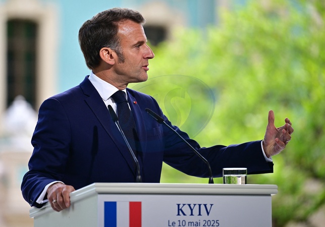 Emmanuel Macron, Friedrich Merz, Keir Starmer, Donald Tusk et Voloydmyr Zelensky donnent une conférence de presse à l'issue de la Coalition des Volontaires à Kiev, le 10 mai 2025. Cette conférence de la Coalition des Volontaires a pour objectif de soutenir l'Ukraine et à contribuer à assurer l'avenir de l'Europe et de l'Ukraine. Le but recherché était l'instauration d'un cessez-le-feu de 30 jours pour soutenir les négociations de paix avec la Russie. © Christian Liewig / Bestimage Emmanuel Macron, Friedrich Merz, Keir Starmer, Donald Tusk, and Voloydmyr Zelensky give a press conference following the Coalition of the Willing in Kyiv on May 10, 2025. The conference aims to support Ukraine and help secure the future of Europe and Ukraine. The goal was to establish a 30-day ceasefire to advance peace negotiations with Russia.