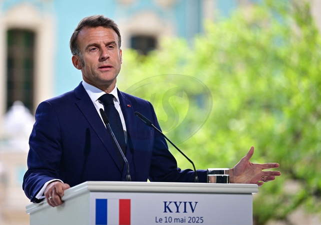 Emmanuel Macron, Friedrich Merz, Keir Starmer, Donald Tusk et Voloydmyr Zelensky donnent une conférence de presse à l'issue de la Coalition des Volontaires à Kiev, le 10 mai 2025. Cette conférence de la Coalition des Volontaires a pour objectif de soutenir l'Ukraine et à contribuer à assurer l'avenir de l'Europe et de l'Ukraine. Le but recherché était l'instauration d'un cessez-le-feu de 30 jours pour soutenir les négociations de paix avec la Russie. © Christian Liewig / Bestimage Emmanuel Macron, Friedrich Merz, Keir Starmer, Donald Tusk, and Voloydmyr Zelensky give a press conference following the Coalition of the Willing in Kyiv on May 10, 2025. The conference aims to support Ukraine and help secure the future of Europe and Ukraine. The goal was to establish a 30-day ceasefire to advance peace negotiations with Russia.