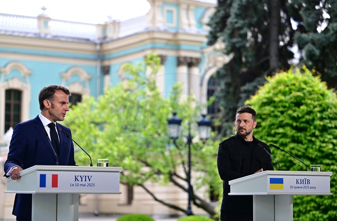 Emmanuel Macron, Friedrich Merz, Keir Starmer, Donald Tusk et Voloydmyr Zelensky donnent une conférence de presse à l'issue de la Coalition des Volontaires à Kiev, le 10 mai 2025. Cette conférence de la Coalition des Volontaires a pour objectif de soutenir l'Ukraine et à contribuer à assurer l'avenir de l'Europe et de l'Ukraine. Le but recherché était l'instauration d'un cessez-le-feu de 30 jours pour soutenir les négociations de paix avec la Russie. © Christian Liewig / Bestimage Emmanuel Macron, Friedrich Merz, Keir Starmer, Donald Tusk, and Voloydmyr Zelensky give a press conference following the Coalition of the Willing in Kyiv on May 10, 2025. The conference aims to support Ukraine and help secure the future of Europe and Ukraine. The goal was to establish a 30-day ceasefire to advance peace negotiations with Russia.