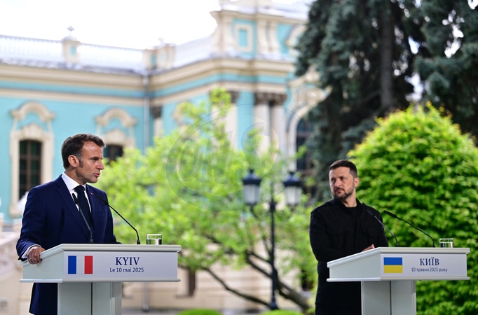 Emmanuel Macron, Friedrich Merz, Keir Starmer, Donald Tusk et Voloydmyr Zelensky donnent une conférence de presse à l'issue de la Coalition des Volontaires à Kiev, le 10 mai 2025. Cette conférence de la Coalition des Volontaires a pour objectif de soutenir l'Ukraine et à contribuer à assurer l'avenir de l'Europe et de l'Ukraine. Le but recherché était l'instauration d'un cessez-le-feu de 30 jours pour soutenir les négociations de paix avec la Russie. © Christian Liewig / Bestimage Emmanuel Macron, Friedrich Merz, Keir Starmer, Donald Tusk, and Voloydmyr Zelensky give a press conference following the Coalition of the Willing in Kyiv on May 10, 2025. The conference aims to support Ukraine and help secure the future of Europe and Ukraine. The goal was to establish a 30-day ceasefire to advance peace negotiations with Russia.