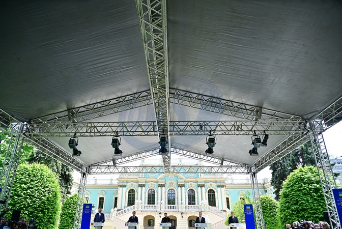 Emmanuel Macron, Friedrich Merz, Keir Starmer, Donald Tusk et Voloydmyr Zelensky donnent une conférence de presse à l'issue de la Coalition des Volontaires à Kiev, le 10 mai 2025. Cette conférence de la Coalition des Volontaires a pour objectif de soutenir l'Ukraine et à contribuer à assurer l'avenir de l'Europe et de l'Ukraine. Le but recherché était l'instauration d'un cessez-le-feu de 30 jours pour soutenir les négociations de paix avec la Russie. © Christian Liewig / Bestimage Emmanuel Macron, Friedrich Merz, Keir Starmer, Donald Tusk, and Voloydmyr Zelensky give a press conference following the Coalition of the Willing in Kyiv on May 10, 2025. The conference aims to support Ukraine and help secure the future of Europe and Ukraine. The goal was to establish a 30-day ceasefire to advance peace negotiations with Russia.