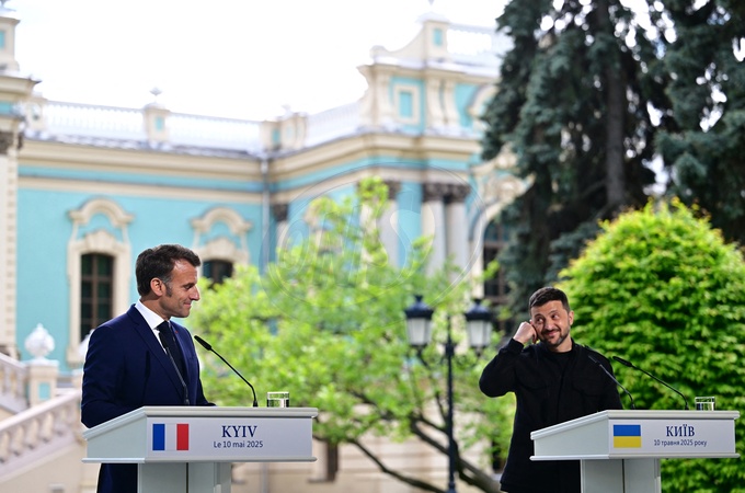 Emmanuel Macron, Friedrich Merz, Keir Starmer, Donald Tusk et Voloydmyr Zelensky donnent une conférence de presse à l'issue de la Coalition des Volontaires à Kiev, le 10 mai 2025. Cette conférence de la Coalition des Volontaires a pour objectif de soutenir l'Ukraine et à contribuer à assurer l'avenir de l'Europe et de l'Ukraine. Le but recherché était l'instauration d'un cessez-le-feu de 30 jours pour soutenir les négociations de paix avec la Russie. © Christian Liewig / Bestimage Emmanuel Macron, Friedrich Merz, Keir Starmer, Donald Tusk, and Voloydmyr Zelensky give a press conference following the Coalition of the Willing in Kyiv on May 10, 2025. The conference aims to support Ukraine and help secure the future of Europe and Ukraine. The goal was to establish a 30-day ceasefire to advance peace negotiations with Russia.