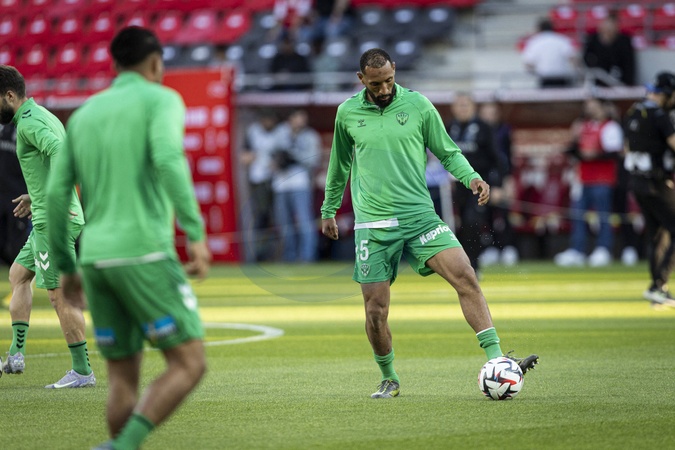 Echauffement des joueurs de Saint Etienne - Match de Ligue 1 McDonalds, Reims FC contre Saint-Etienne (0-2) à Reims le 10 mai 2025. Ligue 1 McDonalds match, Reims FC against Saint-Etienne (0-2) in Reims on May 10, 2025.