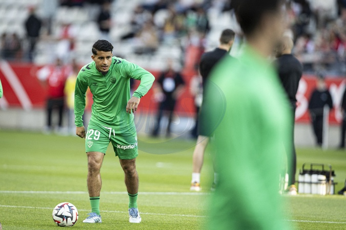MOUEFFEK AIMEN 29 Echauffement des joueurs de Saint Etienne - Match de Ligue 1 McDonalds, Reims FC contre Saint-Etienne (0-2) à Reims le 10 mai 2025. Ligue 1 McDonalds match, Reims FC against Saint-Etienne (0-2) in Reims on May 10, 2025.