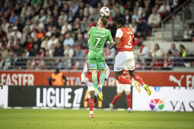 CARDONA IRVIN 7 - Match de Ligue 1 McDonalds, Reims FC contre Saint-Etienne (0-2) à Reims le 10 mai 2025. Ligue 1 McDonalds match, Reims FC against Saint-Etienne (0-2) in Reims on May 10, 2025.