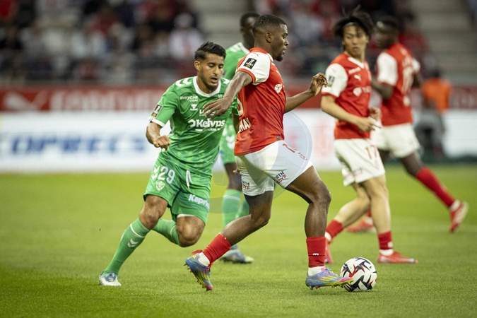 - Match de Ligue 1 McDonalds, Reims FC contre Saint-Etienne (0-2) à Reims le 10 mai 2025. Ligue 1 McDonalds match, Reims FC against Saint-Etienne (0-2) in Reims on May 10, 2025.