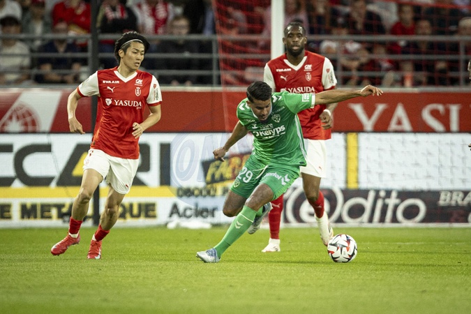 MOUEFFEK AIMEN 29 - Match de Ligue 1 McDonalds, Reims FC contre Saint-Etienne (0-2) à Reims le 10 mai 2025. Ligue 1 McDonalds match, Reims FC against Saint-Etienne (0-2) in Reims on May 10, 2025.