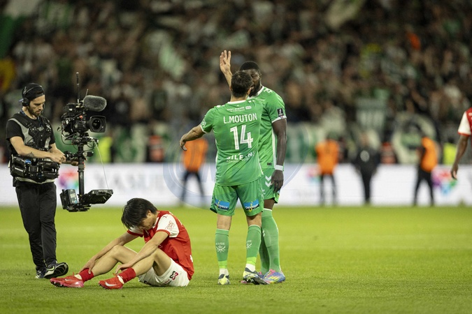 déception des joueurs de Reims après leur défaite - Match de Ligue 1 McDonalds, Reims FC contre Saint-Etienne (0-2) à Reims le 10 mai 2025. Ligue 1 McDonalds match, Reims FC against Saint-Etienne (0-2) in Reims on May 10, 2025.