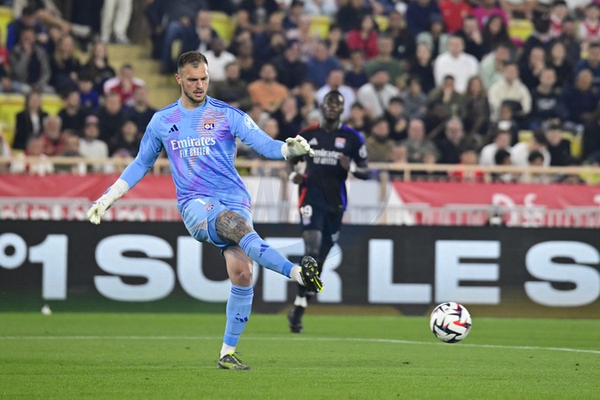 L'AS Monaco affronte l'Olympique Lyonnais dans le cadre de la 33e journée de Ligue 1 Mcdonald's. LucasPerri (OL) Ligue 1 McDonalds match, AS Monaco against Olympique Lyonnais (2-0) in Monaco on may 10, 2025.