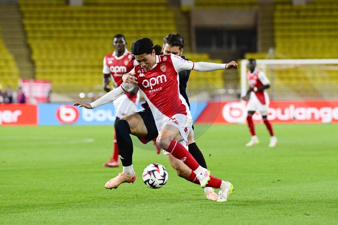 L'AS Monaco affronte l'Olympique Lyonnais dans le cadre de la 33e journée de Ligue 1 Mcdonald's. TakumiMinamino (ASM) Ligue 1 McDonalds match, AS Monaco against Olympique Lyonnais (2-0) in Monaco on may 10, 2025.
