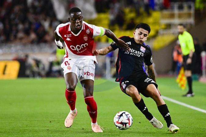 L'AS Monaco affronte l'Olympique Lyonnais dans le cadre de la 33e journée de Ligue 1 Mcdonald's. DenisZakaria (ASM) / ThiagoAlmada (OL) Ligue 1 McDonalds match, AS Monaco against Olympique Lyonnais (2-0) in Monaco on may 10, 2025.