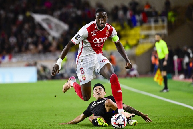 L'AS Monaco affronte l'Olympique Lyonnais dans le cadre de la 33e journée de Ligue 1 Mcdonald's. DenisZakaria (ASM) Ligue 1 McDonalds match, AS Monaco against Olympique Lyonnais (2-0) in Monaco on may 10, 2025.