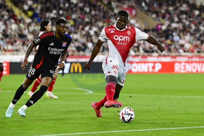 L'AS Monaco affronte l'Olympique Lyonnais dans le cadre de la 33e journée de Ligue 1 Mcdonald's. BreelEmbolo (ASM) Ligue 1 McDonalds match, AS Monaco against Olympique Lyonnais (2-0) in Monaco on may 10, 2025.