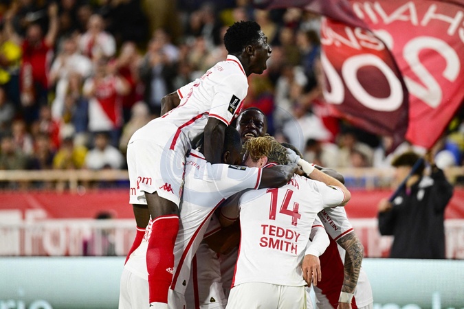 L'AS Monaco affronte l'Olympique Lyonnais dans le cadre de la 33e journée de Ligue 1 Mcdonald's. Joie ASM Ligue 1 McDonalds match, AS Monaco against Olympique Lyonnais (2-0) in Monaco on may 10, 2025.