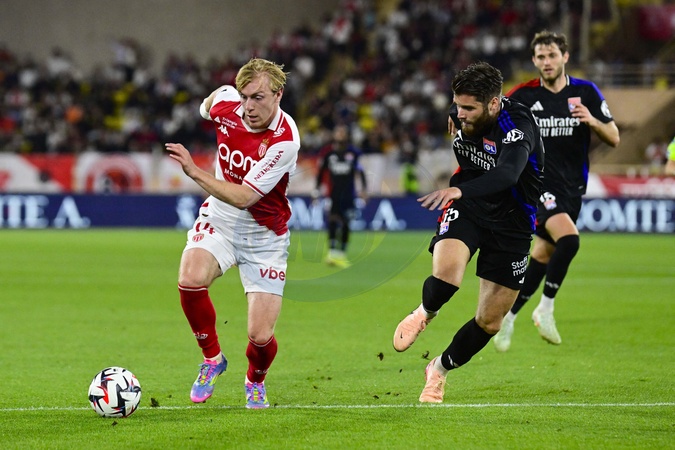 L'AS Monaco affronte l'Olympique Lyonnais dans le cadre de la 33e journée de Ligue 1 Mcdonald's. MikaBiereth (ASM) Ligue 1 McDonalds match, AS Monaco against Olympique Lyonnais (2-0) in Monaco on may 10, 2025.