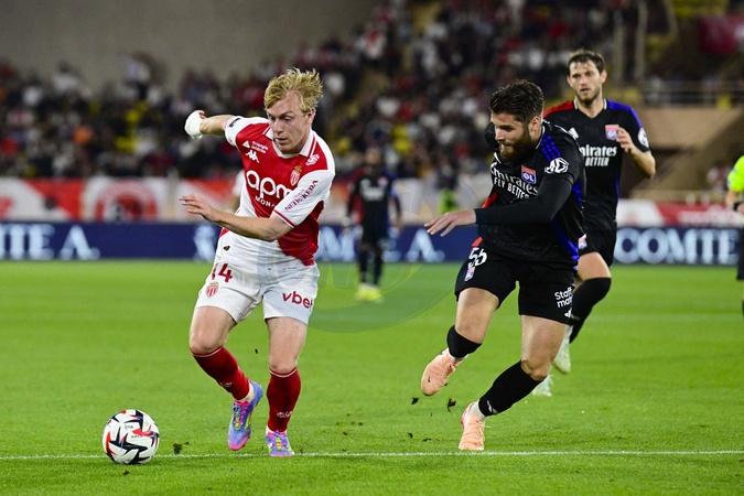 L'AS Monaco affronte l'Olympique Lyonnais dans le cadre de la 33e journée de Ligue 1 Mcdonald's. MikaBiereth (ASM) Ligue 1 McDonalds match, AS Monaco against Olympique Lyonnais (2-0) in Monaco on may 10, 2025.
