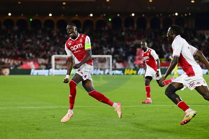 L'AS Monaco affronte l'Olympique Lyonnais dans le cadre de la 33e journée de Ligue 1 Mcdonald's. But DenisZakaria (ASM) Ligue 1 McDonalds match, AS Monaco against Olympique Lyonnais (2-0) in Monaco on may 10, 2025.