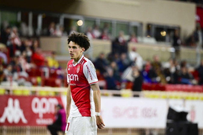 L'AS Monaco affronte l'Olympique Lyonnais dans le cadre de la 33e journée de Ligue 1 Mcdonald's. MaghnesAkliouche (ASM) Ligue 1 McDonalds match, AS Monaco against Olympique Lyonnais (2-0) in Monaco on may 10, 2025.