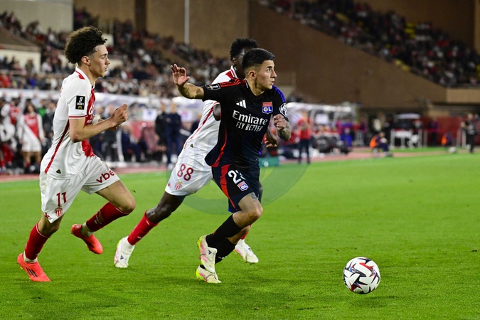 L'AS Monaco affronte l'Olympique Lyonnais dans le cadre de la 33e journée de Ligue 1 Mcdonald's. ThiagoAlmada (OL) Ligue 1 McDonalds match, AS Monaco against Olympique Lyonnais (2-0) in Monaco on may 10, 2025.