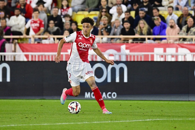 L'AS Monaco affronte l'Olympique Lyonnais dans le cadre de la 33e journée de Ligue 1 Mcdonald's. EliesseBen Seghir (ASM) Ligue 1 McDonalds match, AS Monaco against Olympique Lyonnais (2-0) in Monaco on may 10, 2025.