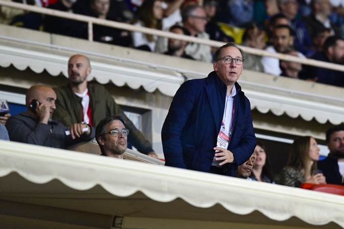 L'AS Monaco affronte l'Olympique Lyonnais dans le cadre de la 33e journée de Ligue 1 Mcdonald's. John Textor, président OL Ligue 1 McDonalds match, AS Monaco against Olympique Lyonnais (2-0) in Monaco on may 10, 2025.