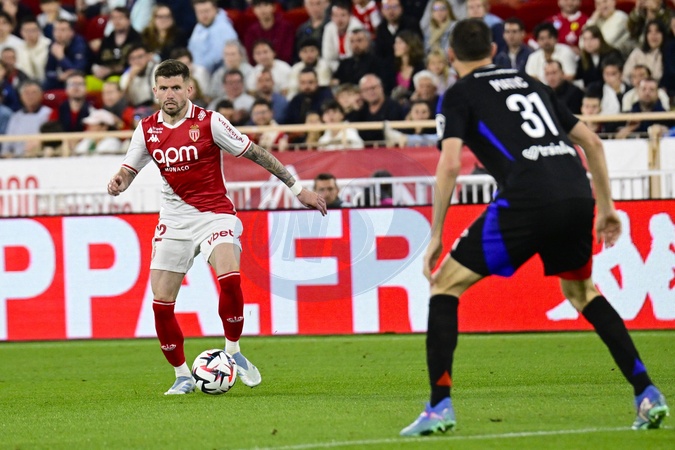 L'AS Monaco affronte l'Olympique Lyonnais dans le cadre de la 33e journée de Ligue 1 Mcdonald's. Caio Henrique (ASM) Ligue 1 McDonalds match, AS Monaco against Olympique Lyonnais (2-0) in Monaco on may 10, 2025.