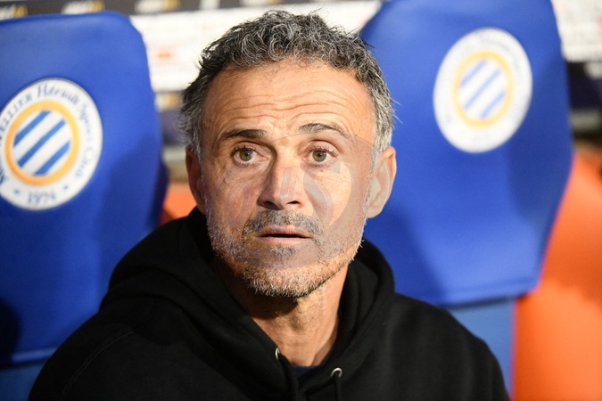 Luis Enrique MARTINEZ GARCIA, entraineur du PSG lors de l'échauffement pour le match Montpellier Herault SC vs. Paris Saint-Germain pour la 33eme journee de la Ligue 1 McDonald's au Stade de la Mosson, le 10 mai 2025. Ligue 1 McDonald's match, Montpellier Herault SC vs. Paris Saint-Germain (1-4) in Montpellier on May 10, 2025.