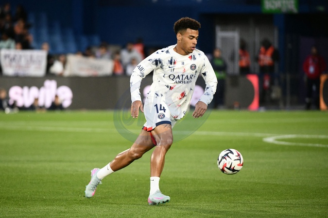 Desire DOUE (PSG) lors de l'échauffement pour le match Montpellier Herault SC vs. Paris Saint-Germain pour la 33eme journee de la Ligue 1 McDonald's au Stade de la Mosson, le 10 mai 2025. Ligue 1 McDonald's match, Montpellier Herault SC vs. Paris Saint-Germain (1-4) in Montpellier on May 10, 2025.