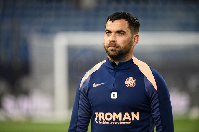 Teji SAVANIER (MHSC) lors de l'échauffement pour le match Montpellier Herault SC vs. Paris Saint-Germain pour la 33eme journee de la Ligue 1 McDonald's au Stade de la Mosson, le 10 mai 2025. Ligue 1 McDonald's match, Montpellier Herault SC vs. Paris Saint-Germain (1-4) in Montpellier on May 10, 2025.