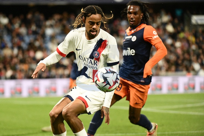 Bradley BRACOLA (PSG) lors du match Montpellier Herault SC vs. Paris Saint-Germain pour la 33eme journee de la Ligue 1 McDonald's au Stade de la Mosson, le 10 mai 2025. Ligue 1 McDonald's match, Montpellier Herault SC vs. Paris Saint-Germain (1-4) in Montpellier on May 10, 2025.
