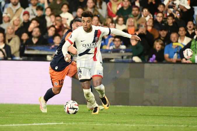 Desire DOUE (PSG) lors du match Montpellier Herault SC vs. Paris Saint-Germain pour la 33eme journee de la Ligue 1 McDonald's au Stade de la Mosson, le 10 mai 2025. Ligue 1 McDonald's match, Montpellier Herault SC vs. Paris Saint-Germain (1-4) in Montpellier on May 10, 2025.