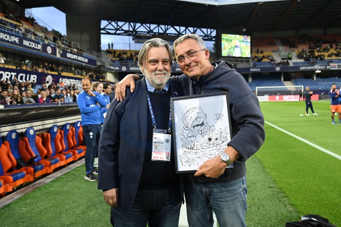 Laurent NICOLLIN, lors de l'Hommage a Philippe SERS «Sersou», commentateur, lors du match Montpellier Herault SC vs. Paris Saint-Germain pour la 33eme journee de la Ligue 1 McDonald's au Stade de la Mosson, le 10 mai 2025. Ligue 1 McDonald's match, Montpellier Herault SC vs. Paris Saint-Germain (1-4) in Montpellier on May 10, 2025.