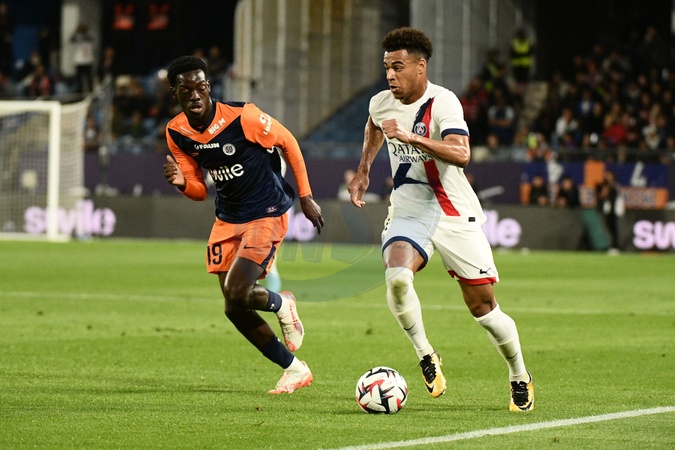Desire DOUE (PSG) lors du match Montpellier Herault SC vs. Paris Saint-Germain pour la 33eme journee de la Ligue 1 McDonald's au Stade de la Mosson, le 10 mai 2025. Ligue 1 McDonald's match, Montpellier Herault SC vs. Paris Saint-Germain (1-4) in Montpellier on May 10, 2025.