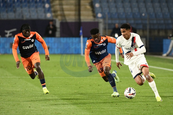 Senny MAYULU (PSG) lors du match Montpellier Herault SC vs. Paris Saint-Germain pour la 33eme journee de la Ligue 1 McDonald's au Stade de la Mosson, le 10 mai 2025. Ligue 1 McDonald's match, Montpellier Herault SC vs. Paris Saint-Germain (1-4) in Montpellier on May 10, 2025.