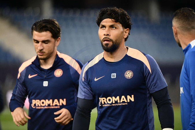 Dimitry BERTAUD (MHSC) lors de l'échauffement pour le match Montpellier Herault SC vs. Paris Saint-Germain pour la 33eme journee de la Ligue 1 McDonald's au Stade de la Mosson, le 10 mai 2025. Ligue 1 McDonald's match, Montpellier Herault SC vs. Paris Saint-Germain (1-4) in Montpellier on May 10, 2025.