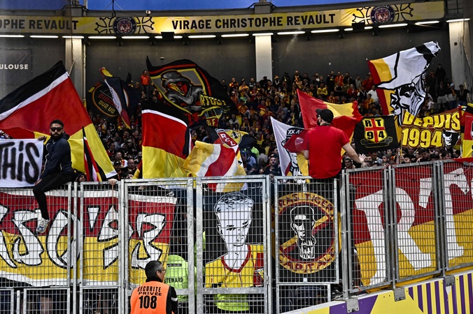 Supporters Lensois - Match de Ligue 1 McDonalds, Toulouse contre Lens (1-1) à Toulouse le 10 mai 2025. Ligue 1 McDonalds match, Toulouse against Lens (1-1) in Toulouse on May 10, 2025.