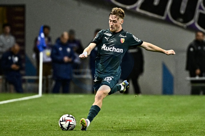 Tom Pouilly (rcl) - Match de Ligue 1 McDonalds, Toulouse contre Lens (1-1) à Toulouse le 10 mai 2025. Ligue 1 McDonalds match, Toulouse against Lens (1-1) in Toulouse on May 10, 2025.
