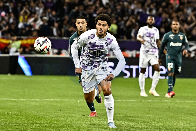 Zakaria Aboukhlal (tfc) vs Anass Zaroury (rcl) - Match de Ligue 1 McDonalds, Toulouse contre Lens (1-1) à Toulouse le 10 mai 2025. Ligue 1 McDonalds match, Toulouse against Lens (1-1) in Toulouse on May 10, 2025.