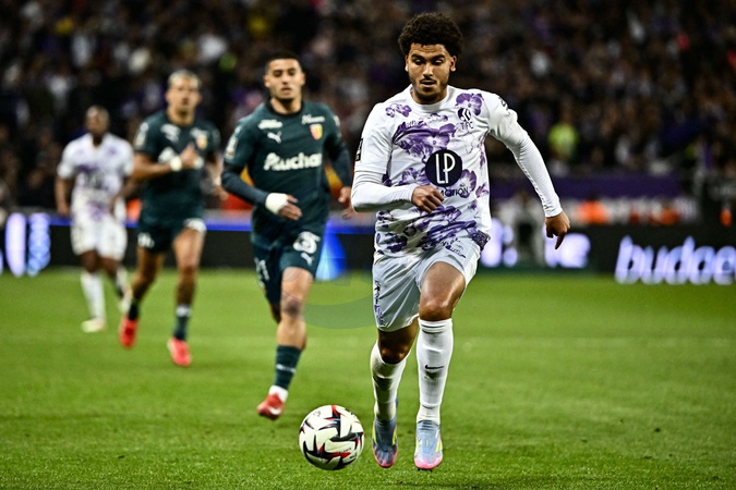 Zakaria Aboukhlal (tfc) vs Anass Zaroury (rcl) - Match de Ligue 1 McDonalds, Toulouse contre Lens (1-1) à Toulouse le 10 mai 2025. Ligue 1 McDonalds match, Toulouse against Lens (1-1) in Toulouse on May 10, 2025.