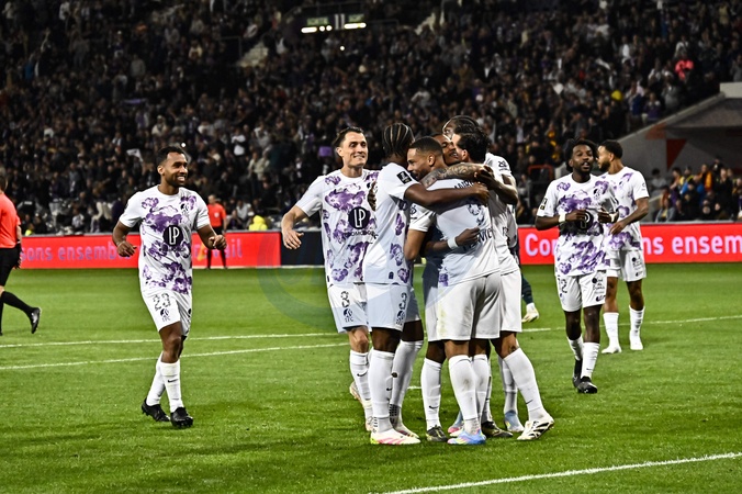 Joie but Yann Gboho (tfc) - Match de Ligue 1 McDonalds, Toulouse contre Lens (1-1) à Toulouse le 10 mai 2025. Ligue 1 McDonalds match, Toulouse against Lens (1-1) in Toulouse on May 10, 2025.